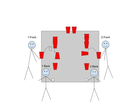 Landmine is fun game that can be really quick or just last the same amount of time as a regular game. The premise is that is you and your partner hit the same cup, every cup that it touches is now gone for the game. So, in theory, you could win in 2 turns. Playing 10 cups, if you both sink the middle cup, that cup touches 6 other cups and 7 are now gone. Then you get balls back, and if you both hit the same cup on a three cup triangle, you win!